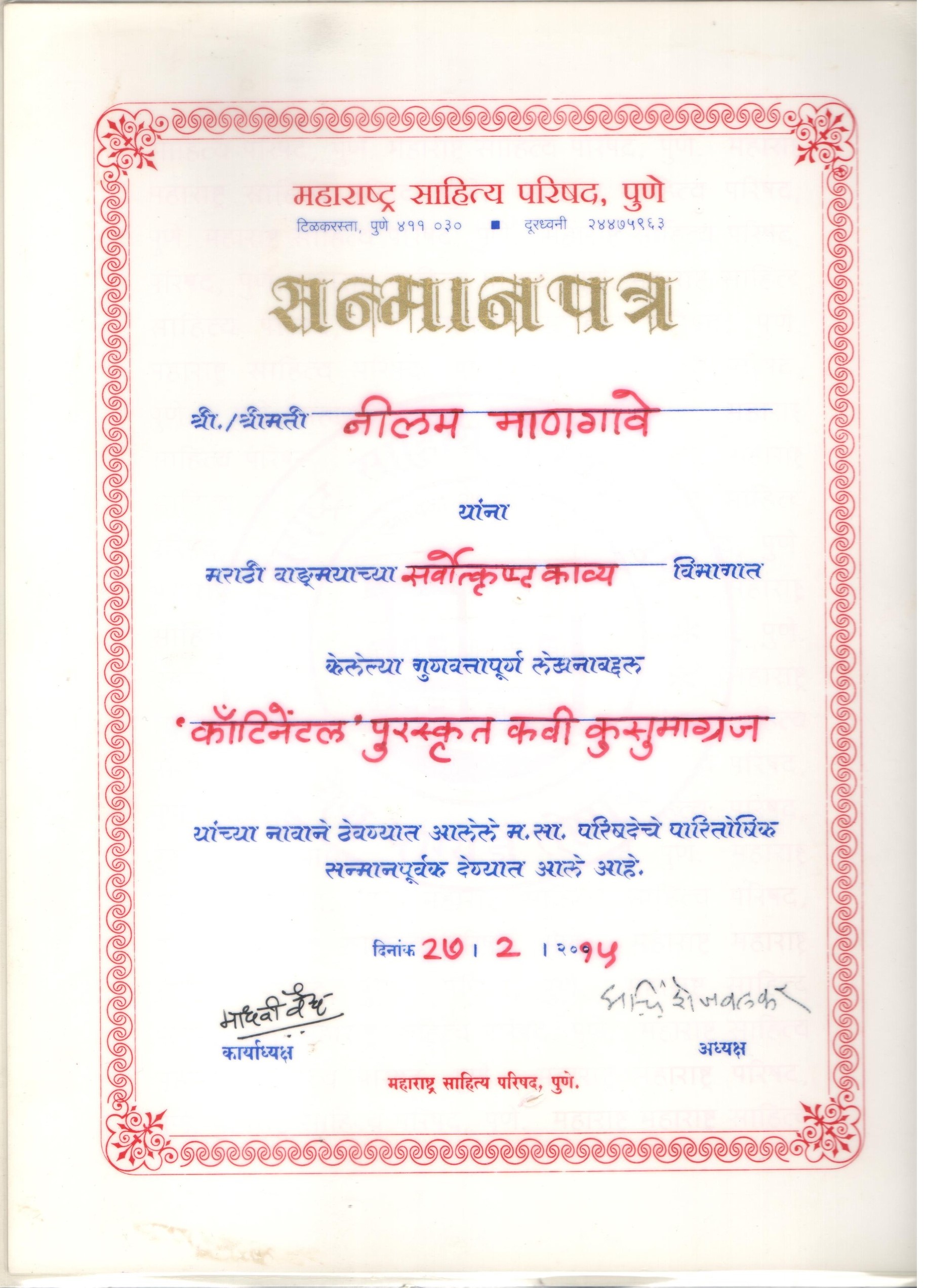 नीलम माणगावे या मराठीतील प्रतिथयश लेखिका आहेत. कथा, कविता, कादंबरी, लोकसाहित्य, आत्मकथन, सामाजिक, वैचारिक लेख, प्रवासानुभव, संपादन- समीक्षात्मक वगैरे साहित्य प्रकारामधून विपूल लेखन केलेले आहे. प्रौढसाहित्याबरोबर बालसाहित्यही लिहिले आहे. आजपर्यंत त्यांची ७३ पुस्तके प्रकाशित झालेली आहेत. त्यांना अनेक पुरस्कार मिळाले आहेत. त्यांच्या तीन पुस्तकांना महाराष्ट्र राज्य शासनाचा पुरस्कार, मिळाला आहे. त्याशिवाय राज्यस्तरीय अनेक पुरस्कार मिळाले आहेत. अभ्यासक्रमामध्ये त्यांच्या कथा, कवितांचा समावेश झाला आहे त्याच्या साहित्यिक सेवेबद्‌द्‌ल अधिक माहिती घेण्यासाठी त्यांच्या प्रकाशित पुस्तकांना भेट दया.